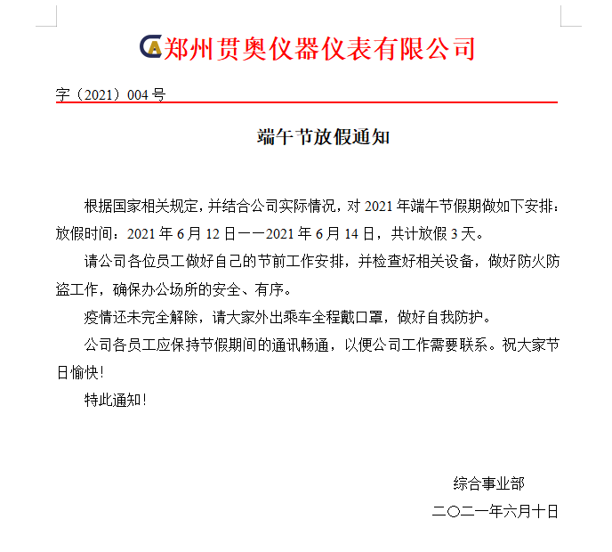 根據(jù)國家相關規(guī)定,并結合公司實際情況,現(xiàn)對2021年端午節(jié)假期做出以下安排: