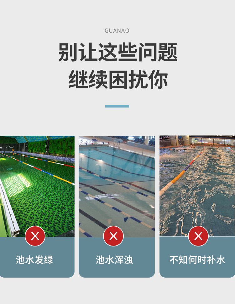 4、檢測精準,項目齊全。貫奧泳池水質監測儀器設備可檢測12個常規項目,參數可自由定制