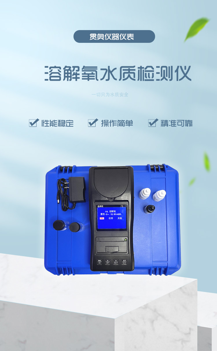 溶解氧水質檢測儀主要用于飲用水中的溶解氧參數的測定。本儀器可廣泛用于水廠、養殖、環保等行業,是常用的戶外及實驗室水質檢測儀器。