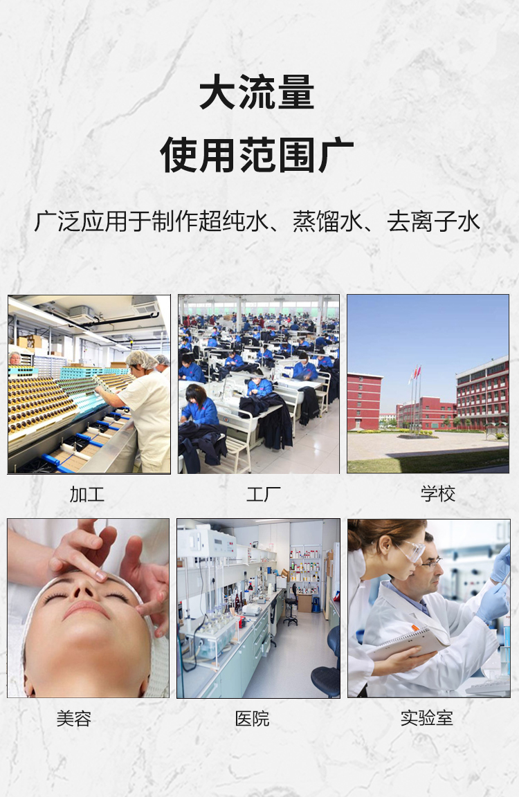GA系列實(shí)驗(yàn)室純水機(jī)以反滲透和深度離子除鹽為制水工藝基礎(chǔ),設(shè)備直接連接城市自來(lái)水,可制備達(dá)到國(guó)標(biāo)GB6682-2008一級(jí)水質(zhì)的實(shí)驗(yàn)用超純水。